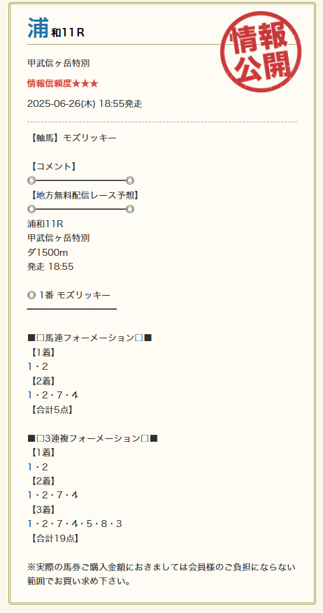 6/26(木)浦和11Rの無料予想で