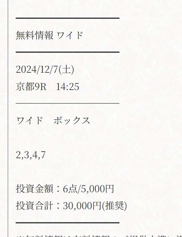 無料予想でワイド3点完全的中!